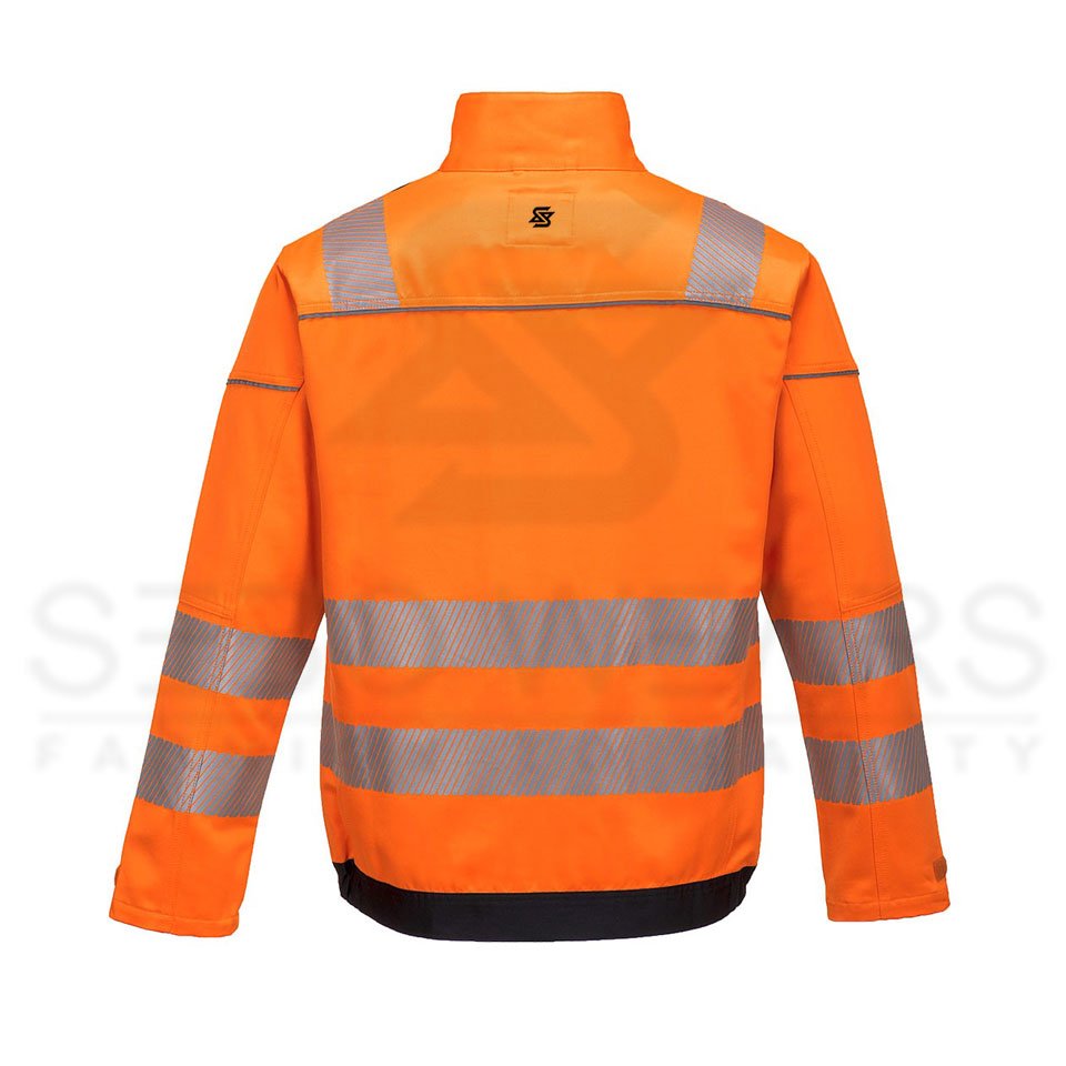 Featuring the latest innovative design, this contemporary two tone hi-vis jacket is both stylish and practical. The top pocket can accommodate modern smart phone dimensions and the spacious lower pockets are zipped for extra security. Outstanding features include reflective trim, HiVisTex Pro reflective tape, hook and loop adjustable cuffs and reinforced twin stitched seams.