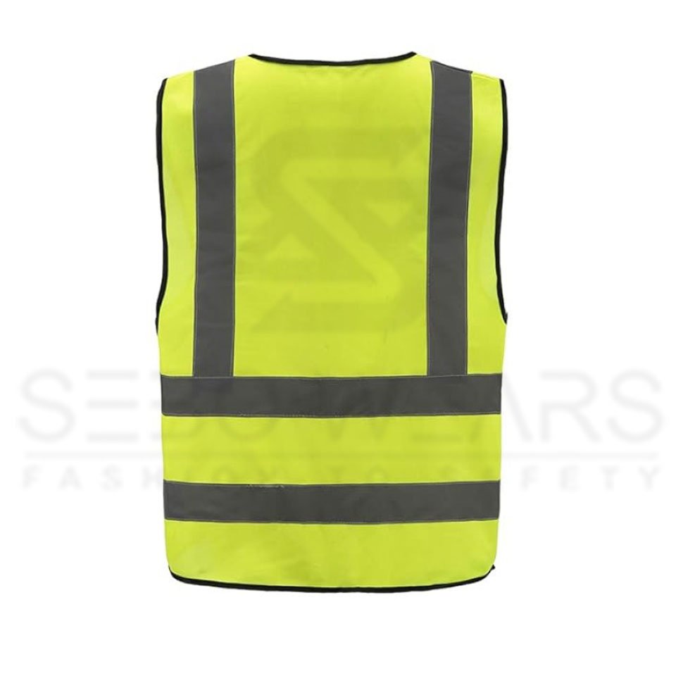 100% polyester high visibility reflective material, lightweight and breathable, washable and durable.Black edging is not easy to dirty easier to match.